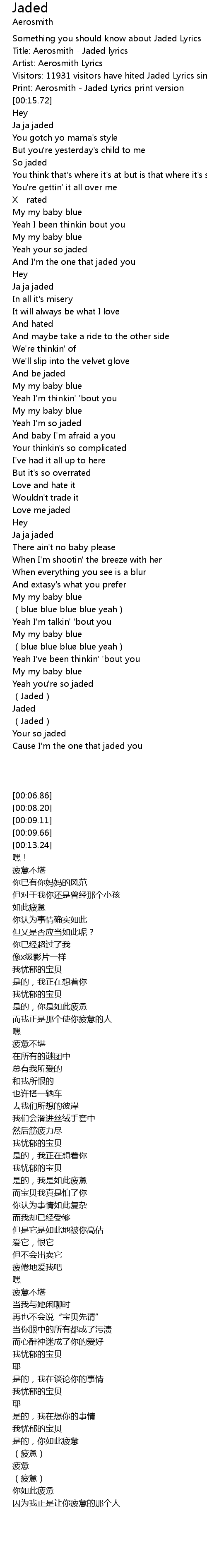 | [00:13.24] | Print: Aerosmith - Jaded Lyrics print version |