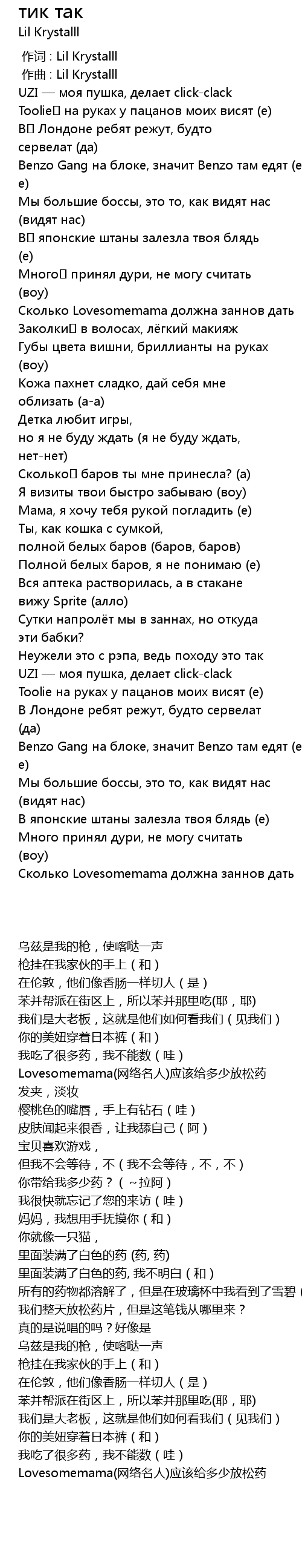 | [00:01.00] | 作曲 : Lil Krystalll |