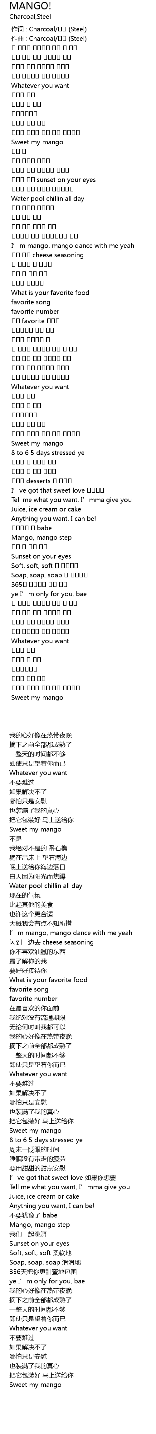 | [01:05.366] | I' m mango, mango dance with me yeah |