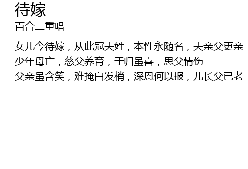 | 女儿今待嫁,从此冠夫姓,本性永随名,夫亲父更亲 | |