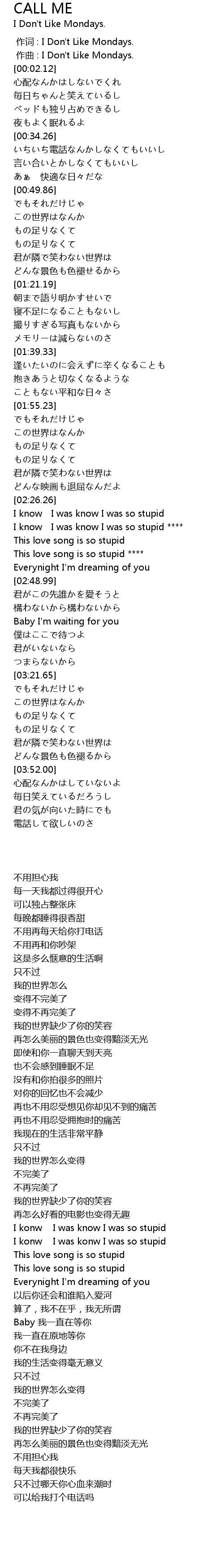 | [00:00.00] | 作词 : I Don't Like Mondays. |