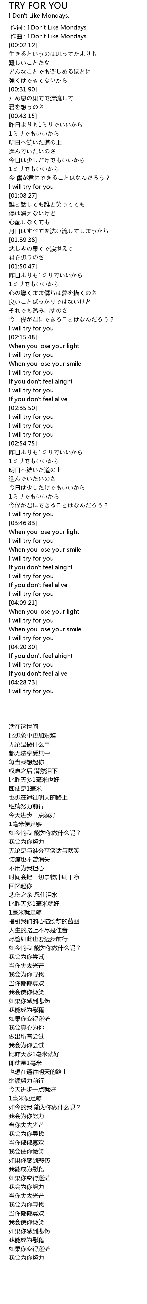 | [00:00.00] | zuò cí : I Don' t Like Mondays. |