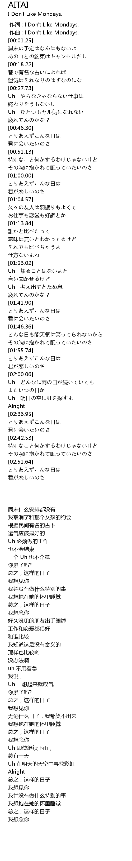 | [00:00.00] | zuò cí : I Don' t Like Mondays. |