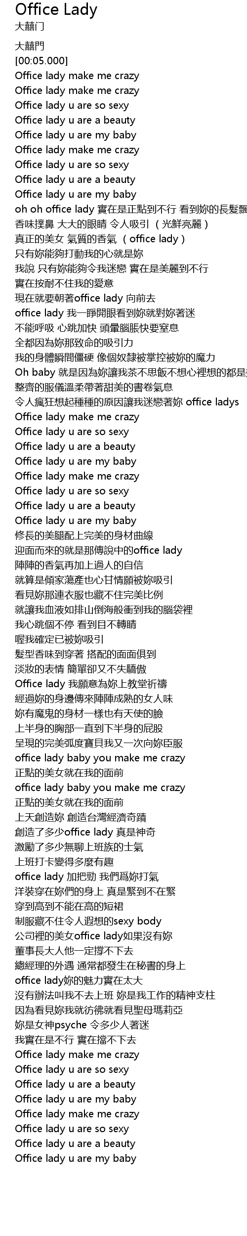 | [04:04.900] | office lady nǎi de mèi lì shí zài tài dà |