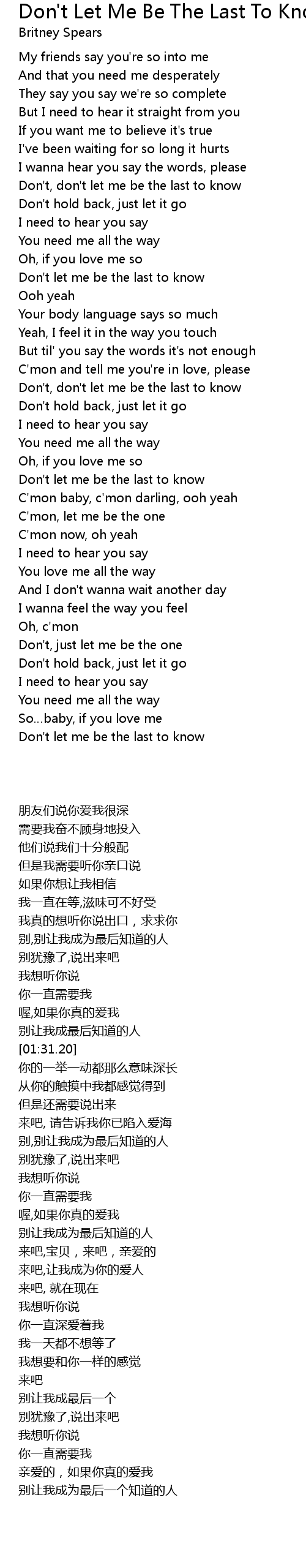 | [00:59.63] | Don' t, don' t let me be the last to know |