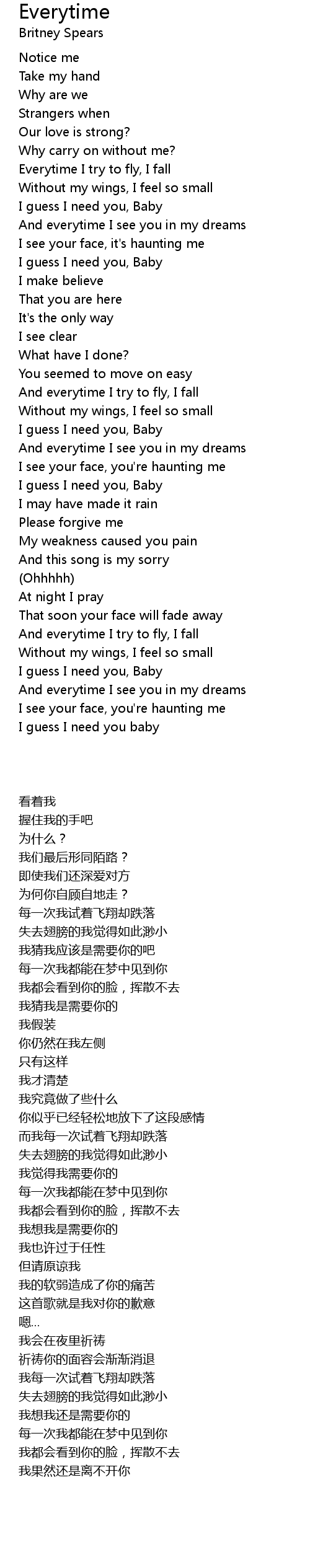 | 歌曲 | Everytime |