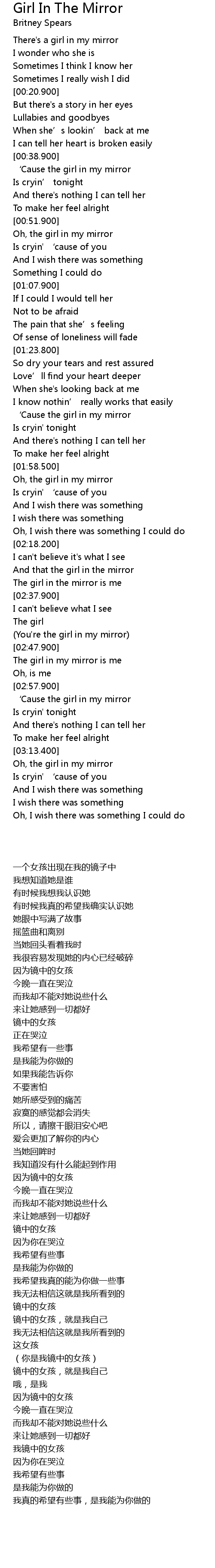 | [02:59.800] | ' Cause the girl in my mirror |