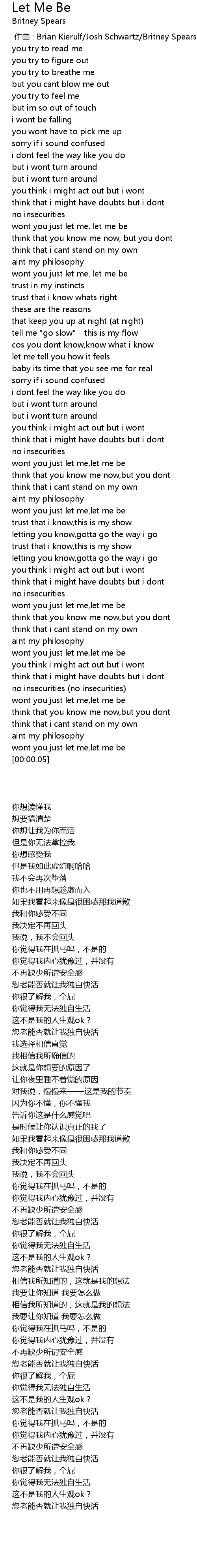 | 歌曲 | Let Me Be |