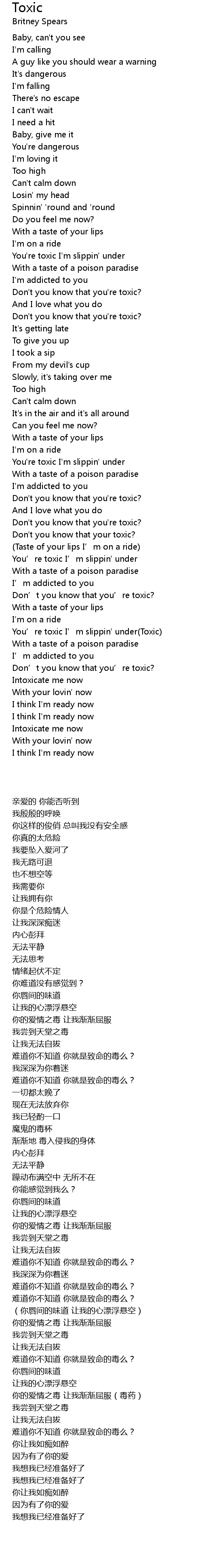 | [02:55.96] | You’re toxic I’m slippin' under(Toxic) |