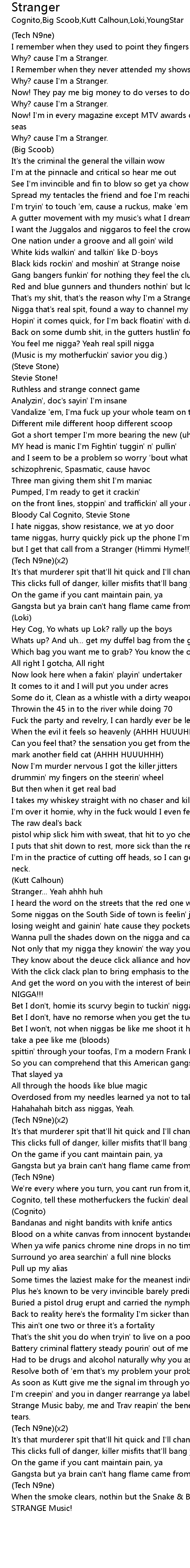 | That's my shit, that's the reason why I'm a Stranger | |