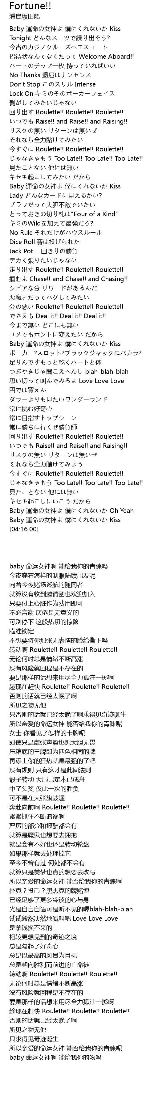 | [03:11.54] | 回り出す Roulette!! Roulette!! Roulette!! |