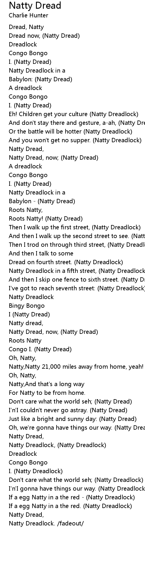 And then I walk up the second street to see. (Natty Dreadlock) |