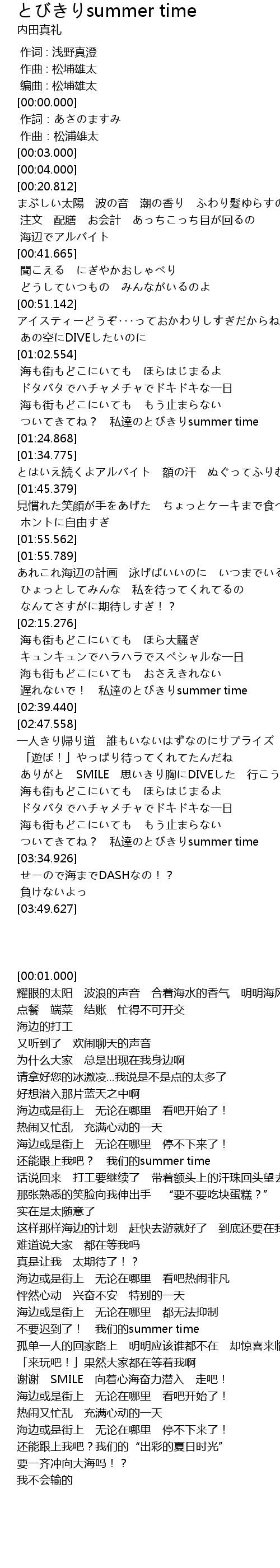 | [02:31.573] | 遅れないで! 私達のとびきりsummer time |