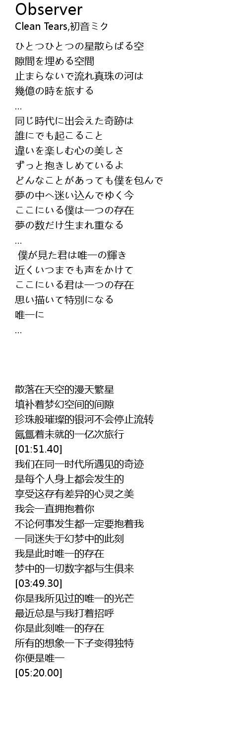 | [04:38.30] | 僕が見た君は唯一の輝き |