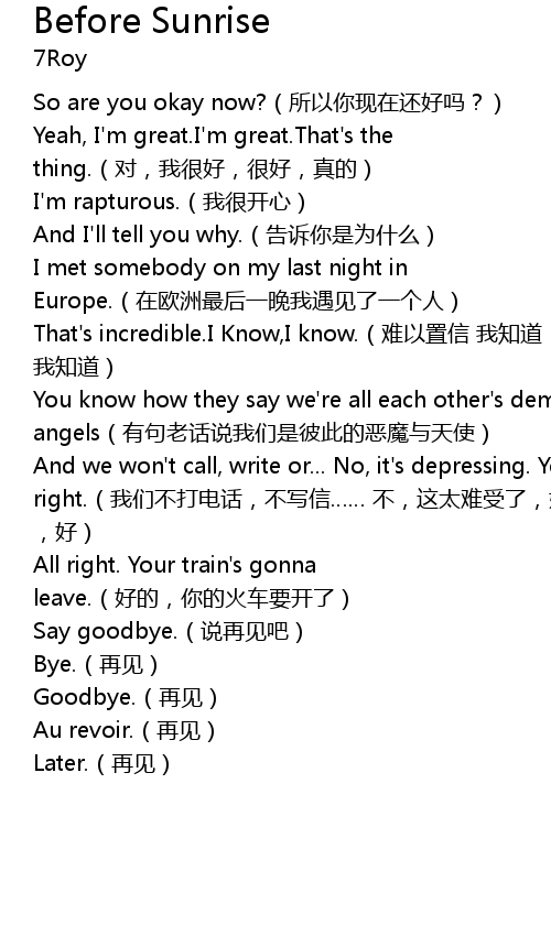 | 歌曲 | Before Sunrise |