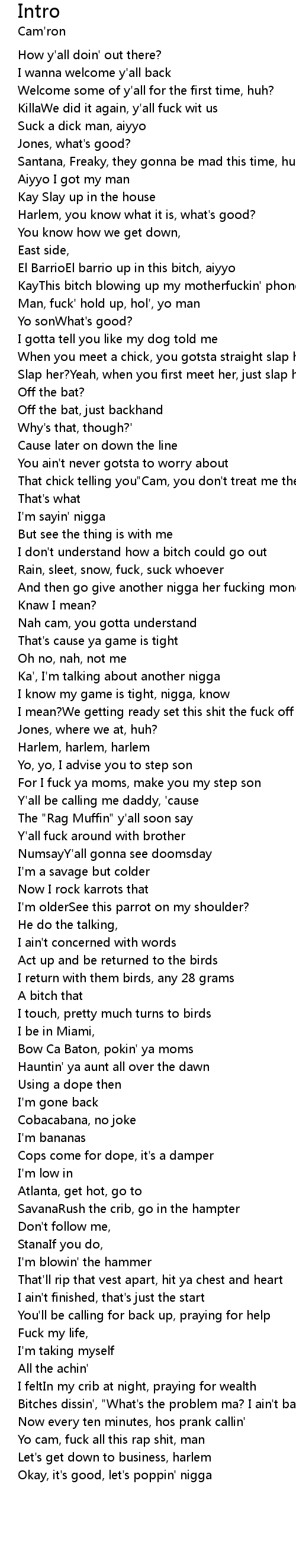 That chick telling you"Cam, you don't treat me the way you used to" |