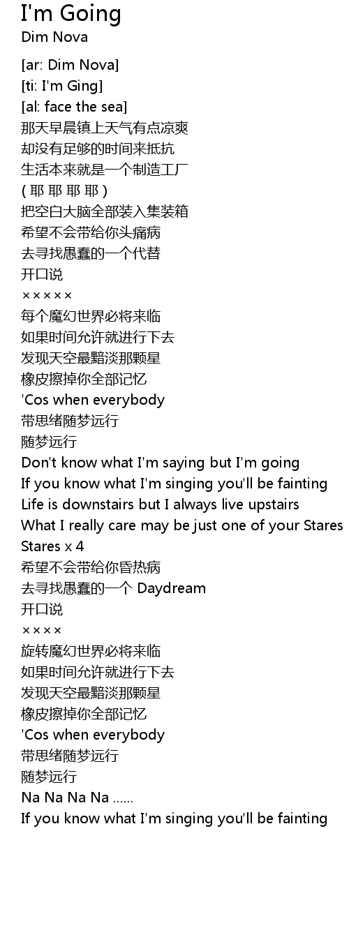 | 歌曲 | I'm Going |