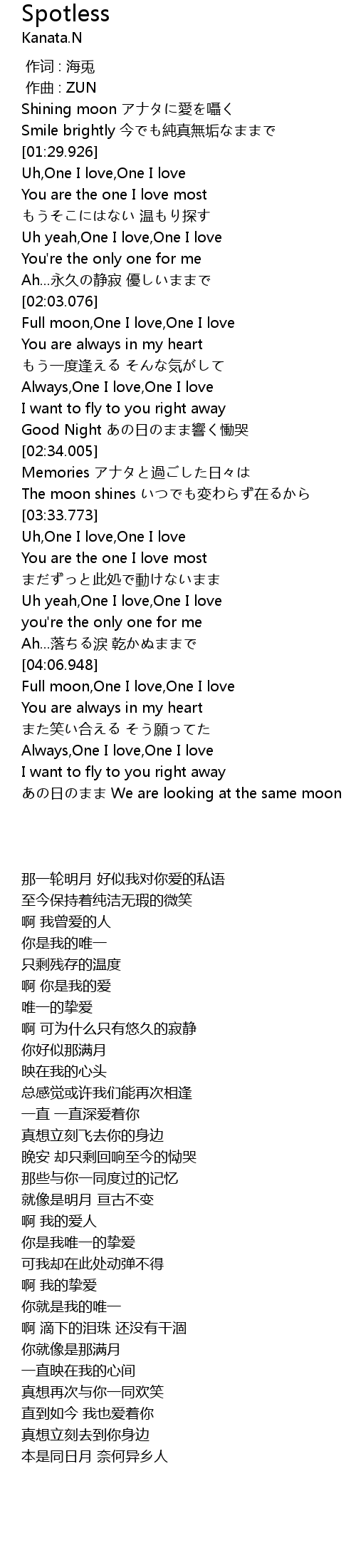| [04:07.053] | Full moon,One I love,One I love |