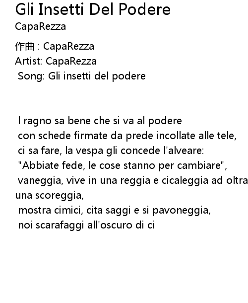 | vaneggia, vive in una reggia e cicaleggia ad oltranza comizi della sostanza di una scoreggia, | |