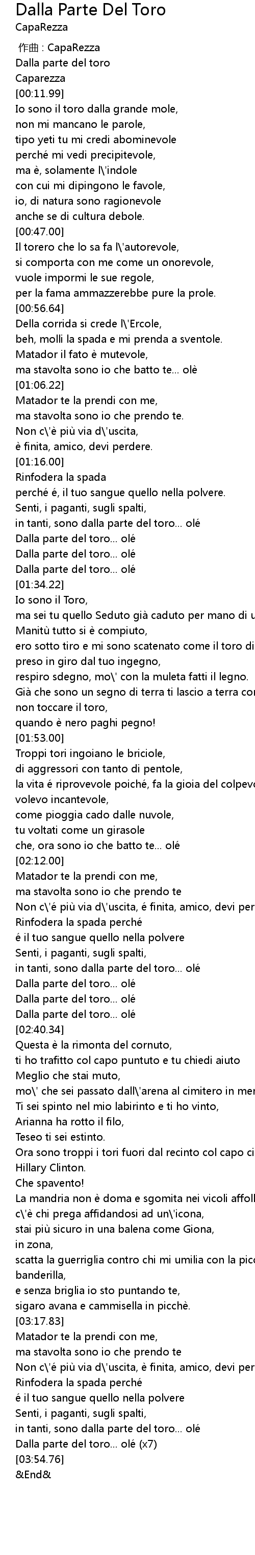 | [03:38.47] | Dalla parte del toro... olé (x7) |