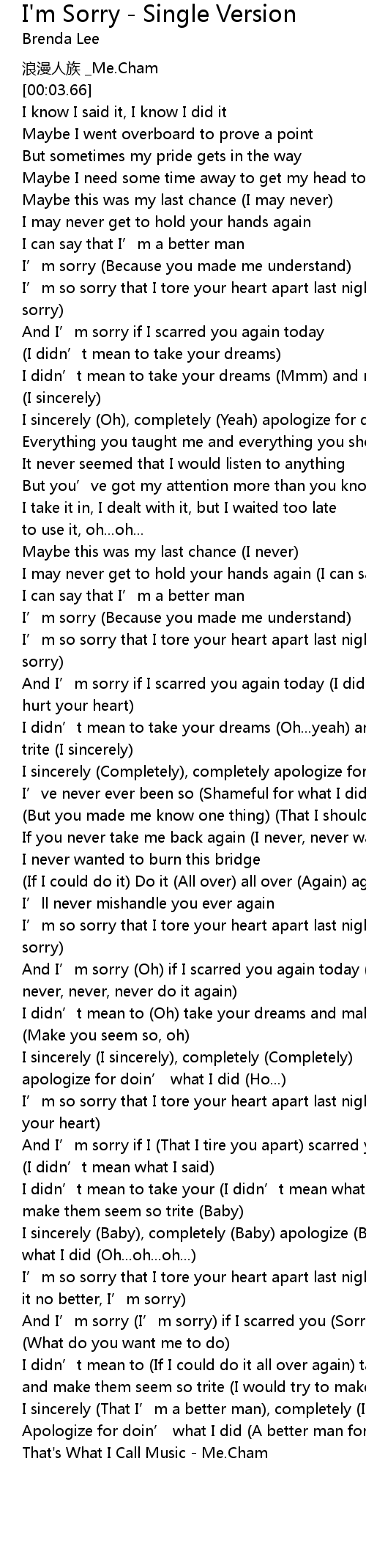 | [04:04.11] | And I' m sorry if I That I tire you apart scarred you again today I didn' t mean what I said |