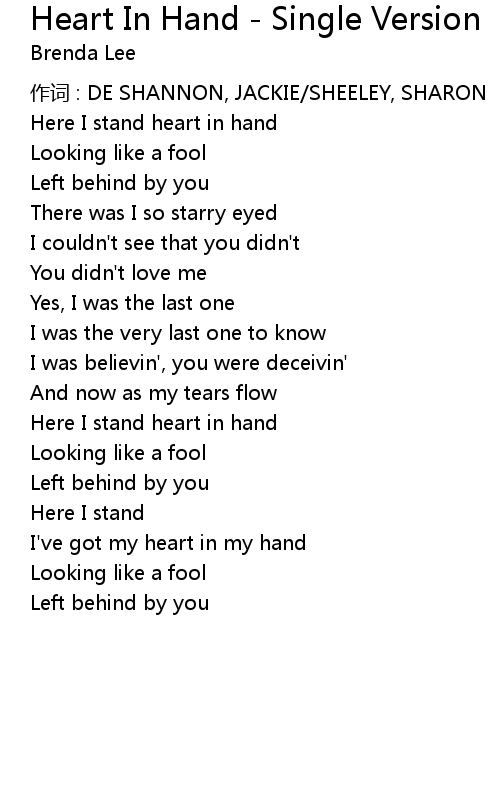 | 歌曲 | Heart In Hand - Single Version |