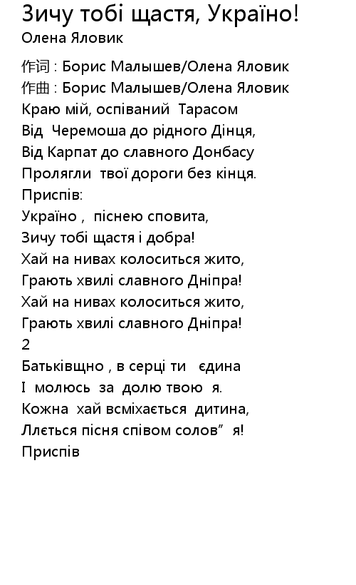 | 歌曲 | Зичу тобі щастя, Україно! |