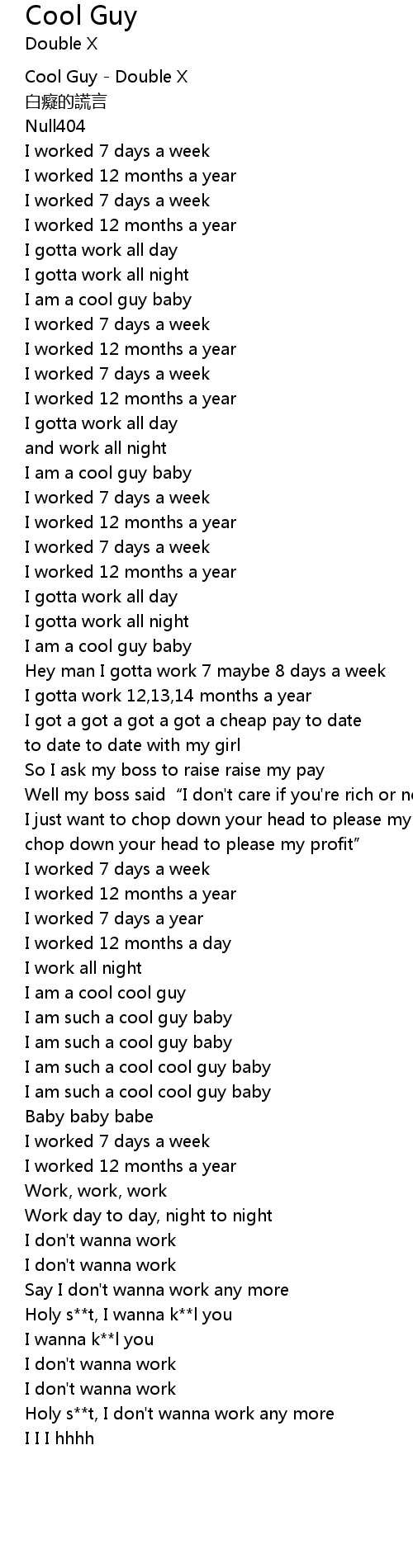 | [03:54.279] | Holy s**t, I don't wanna work any more |