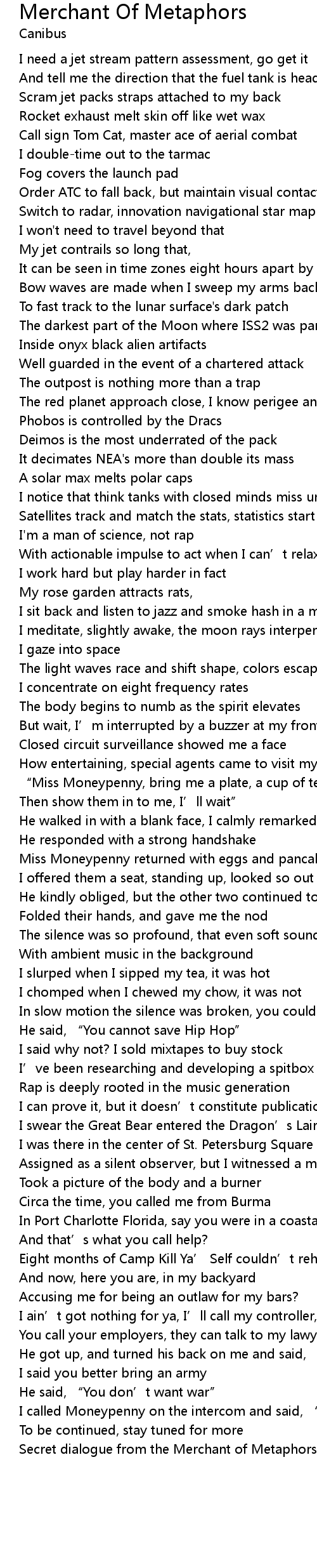 | 歌曲 | Merchant Of Metaphors |