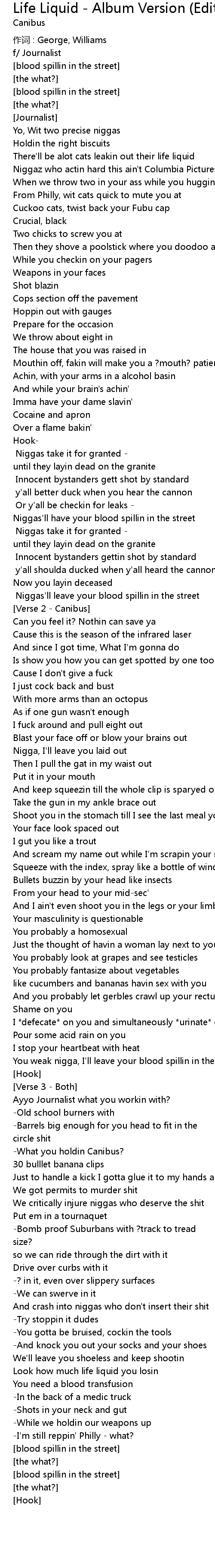 | You weak nigga, I'll leave your blood spillin in the street | |