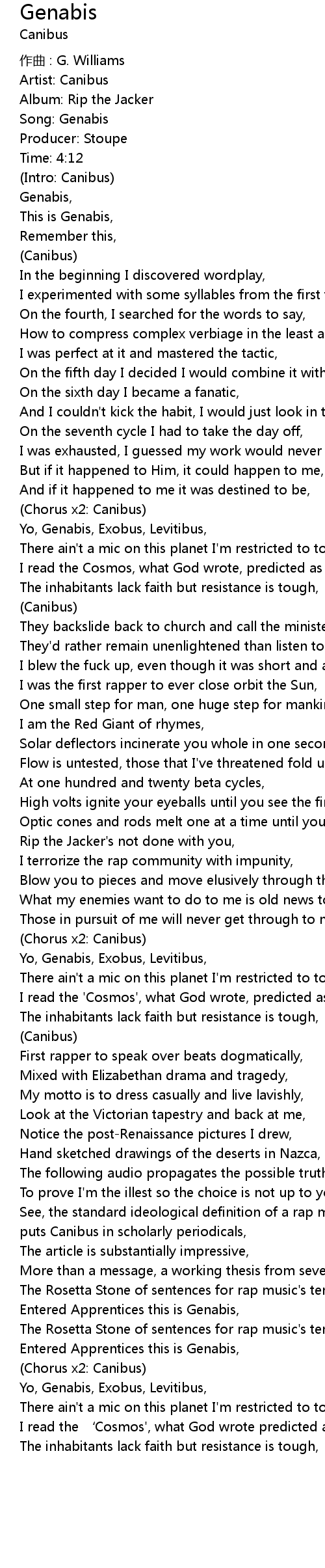 | The Rosetta Stone of sentences for rap music' s tentative, | |