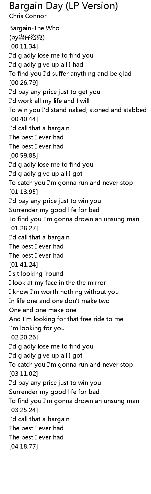 | [00:35.86] | To win you I'd stand naked, stoned and stabbed |