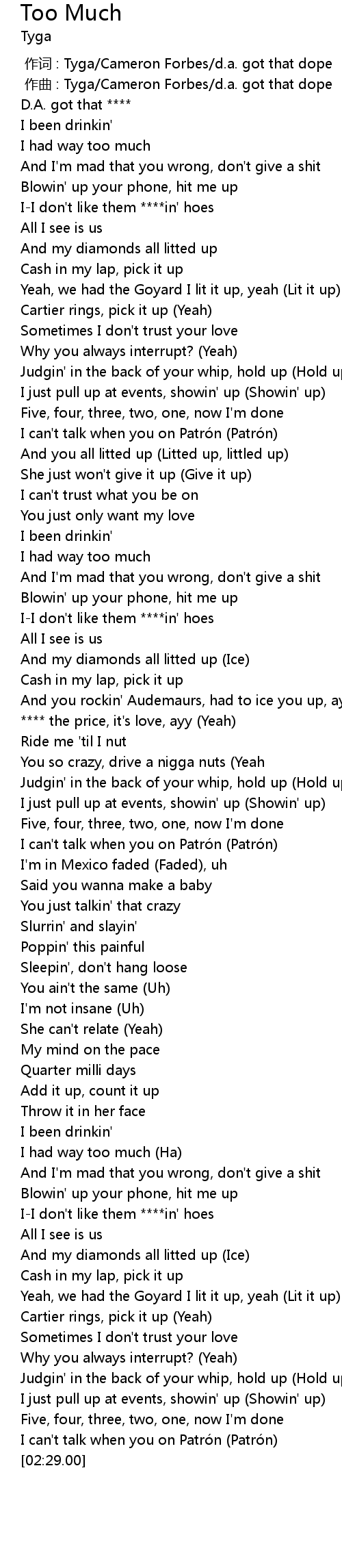 | [00:00.00] | 作词 : Tyga/Cameron Forbes/d.a. got that dope |