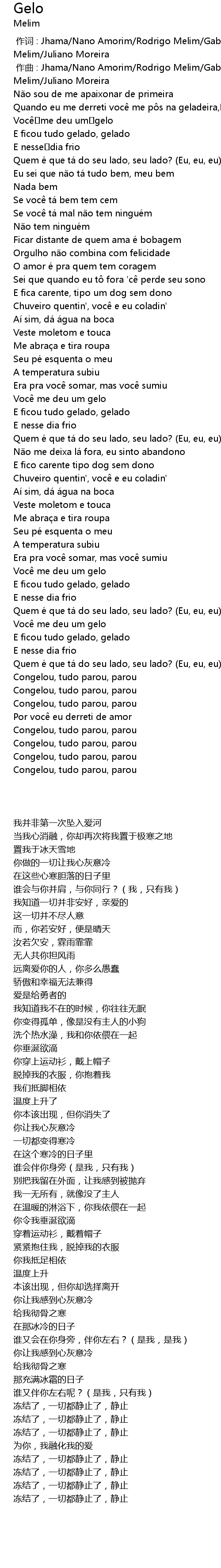 | [00:13.38] | E ficou tudo gelado, gelado |
