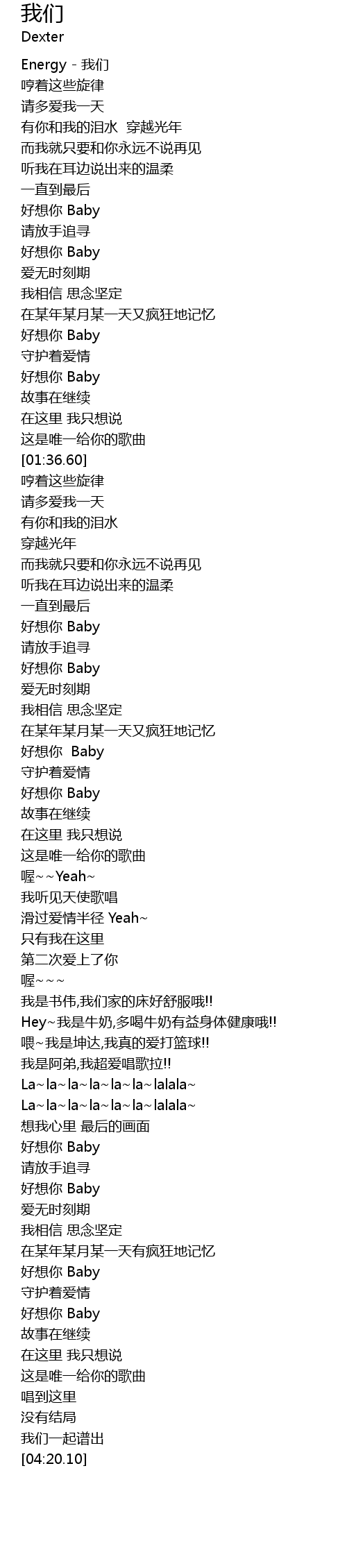 | [01:04.32] | 好想你 Baby |