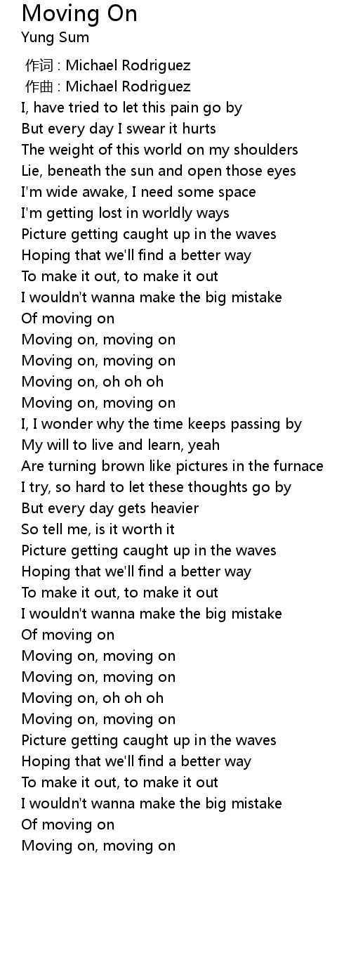 | [02:03.91] | Of moving on |