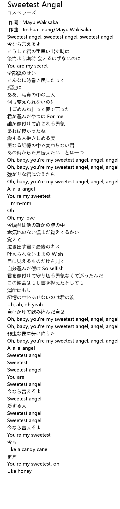 | [00:10.622] | Sweetest angel, sweetest angel, sweetest angel |