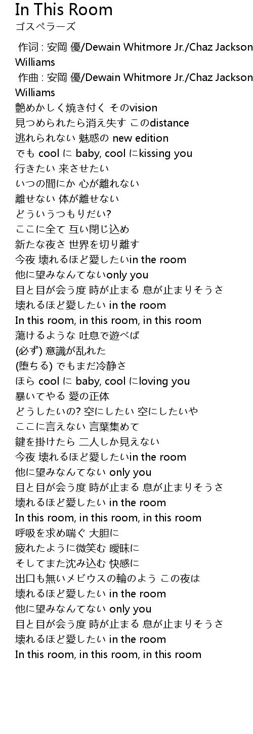 | [02:33.447] | 壊れるほど愛したい in the room |