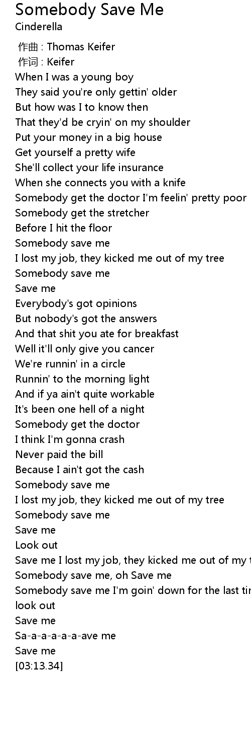 | [02:49.38] | Somebody save me, oh Save me |