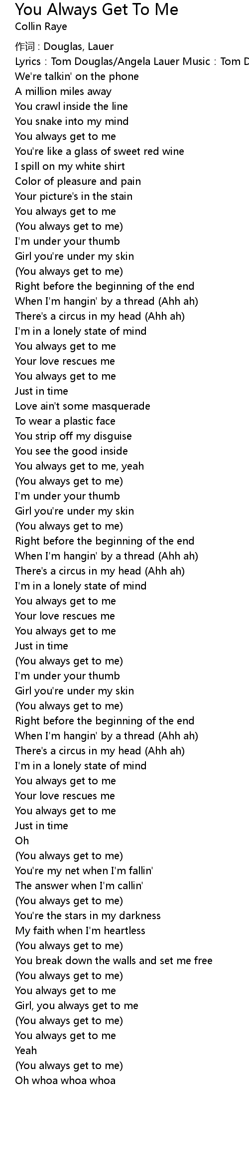 | 歌曲 | You Always Get To Me |