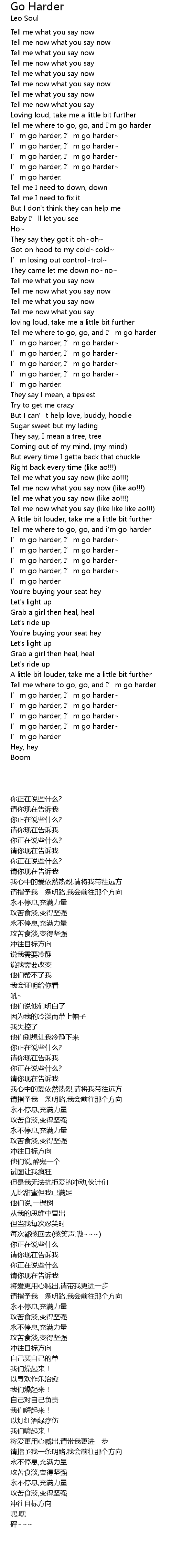 | [01:52.05] | Tell me where to go, go, and i' m go harder |
