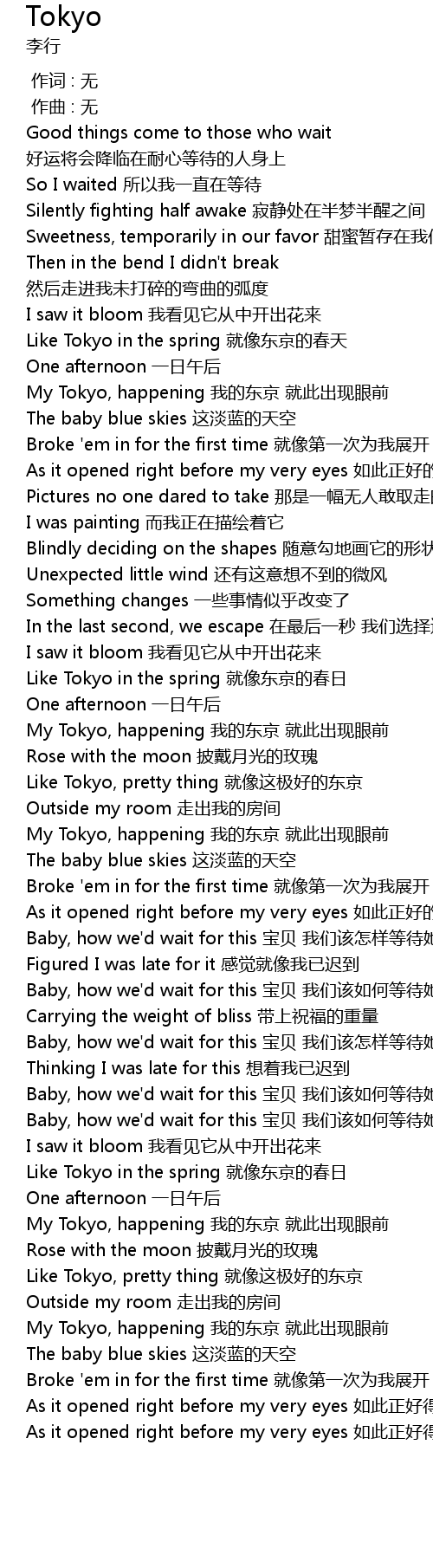 | [02:34.914] | Like Tokyo in the spring jiu xiang dong jing de chun ri |