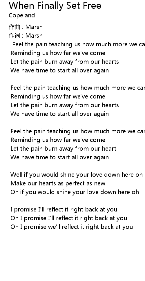 | 歌曲 | When Finally Set Free |