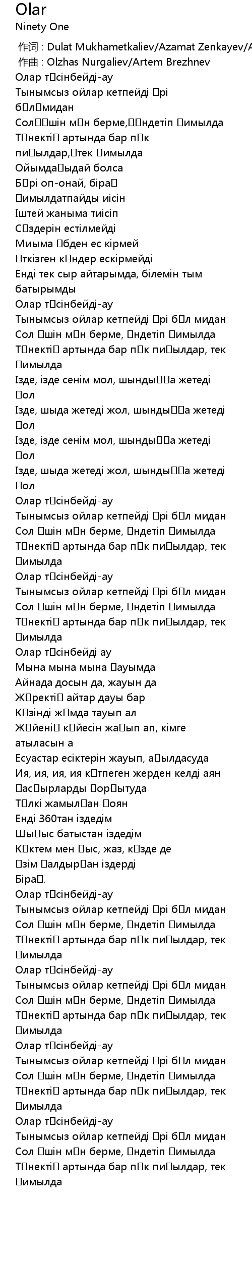 作词 : Dulat Mukhametkaliev/Azamat Zenkayev/Artem Brezhnev |