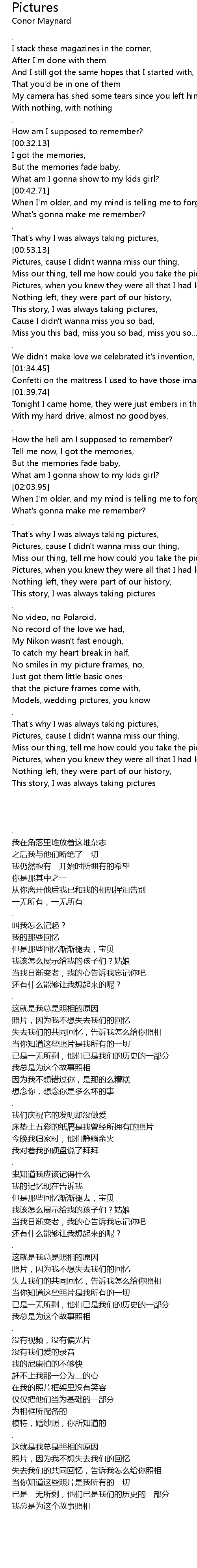 | [03:24.63] | This story, I was always taking pictures |