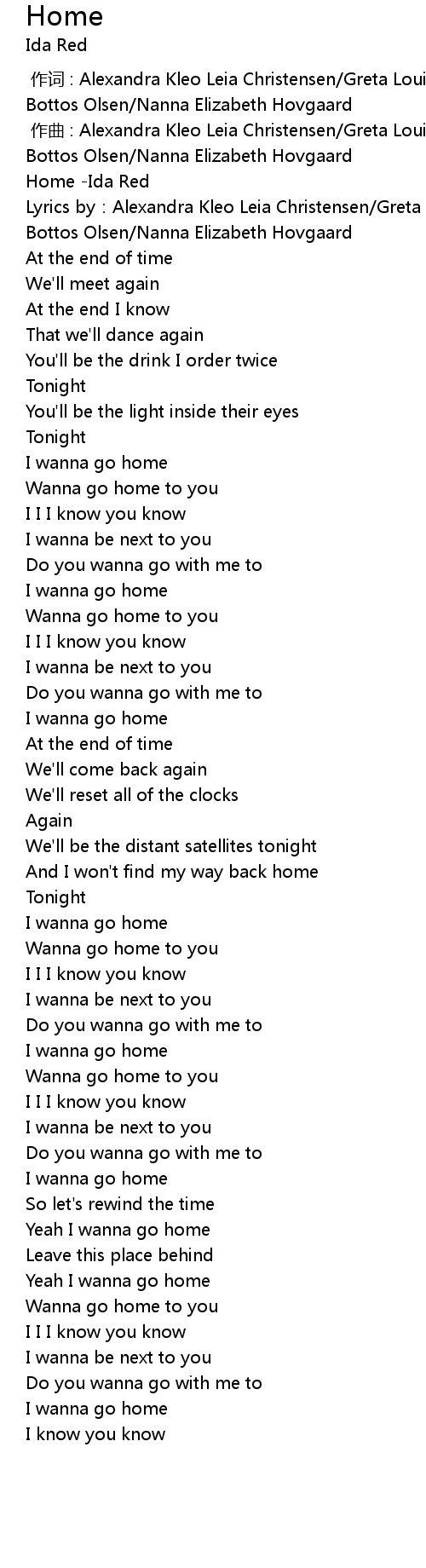 | [00:01.439] | Lyrics by:Alexandra Kleo Leia Christensen/Greta Louise Schenk/Nanna Bottos Olsen/Nanna Elizabeth Hovgaard |