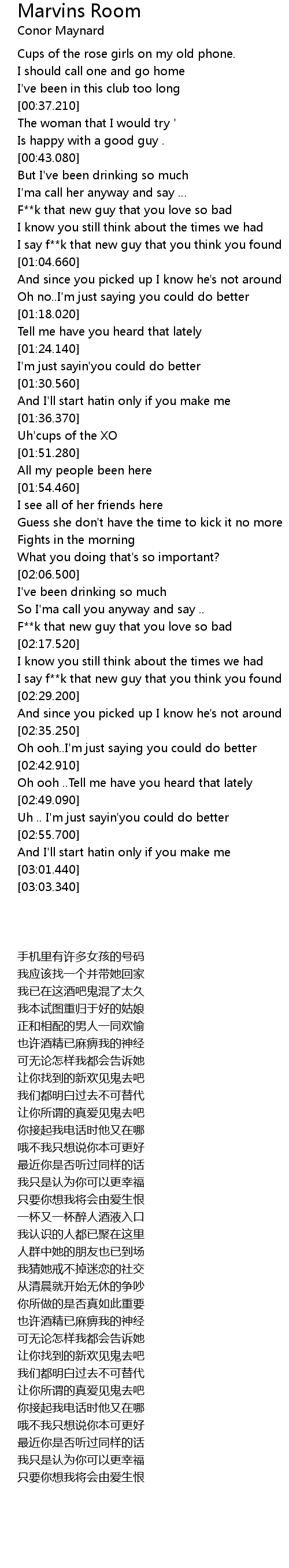 | [02:13.030] | F**k that new guy that you love so bad |
