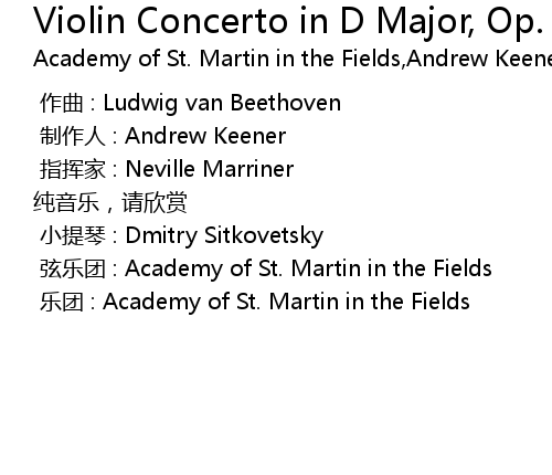 | 歌曲 | Violin Concerto in D Major, Op. 61:III. Rondo - Allegro |