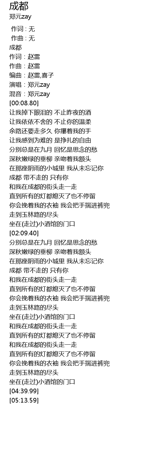 | [03:05.54] | 成都 带不走的 只有你 |
