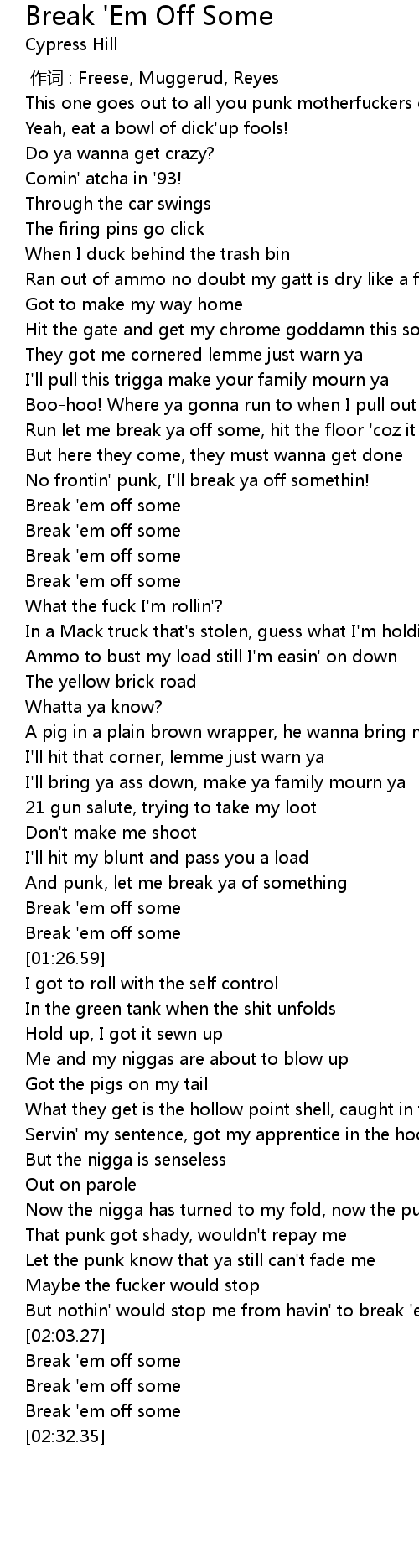 | [00:47.90] | No frontin' punk, I'll break ya off somethin! |